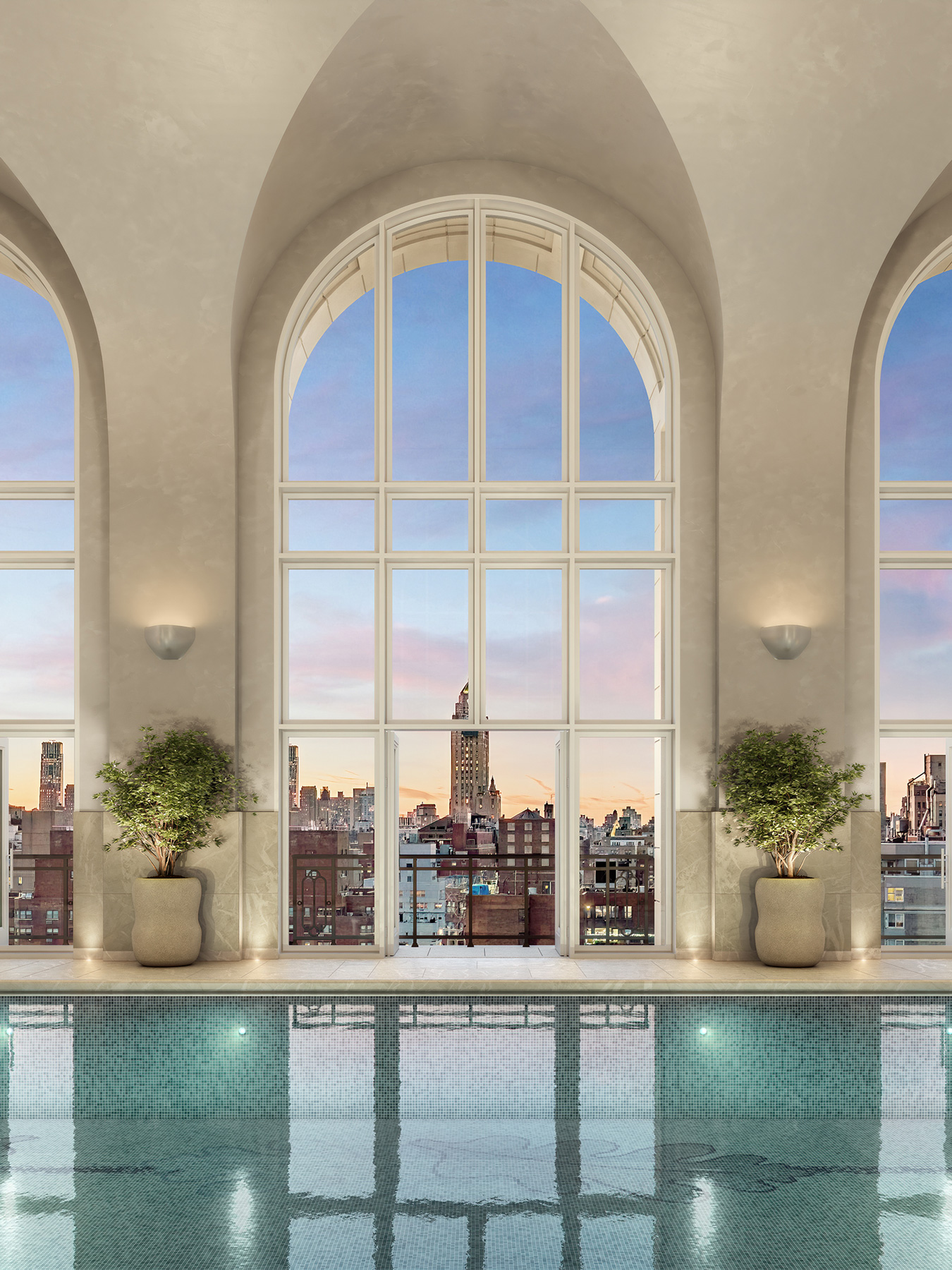 The building's most distinctive feature is its partnership with h.wood Group, the hospitality company behind celebrity-favorite venues Delilah and The Nice Guy. A 15,000 SF signature restaurant and a private members club occupy the tower's prime retail levels, with all residents receiving complimentary h.wood Rolodex membership for priority access at h.wood venues worldwide.