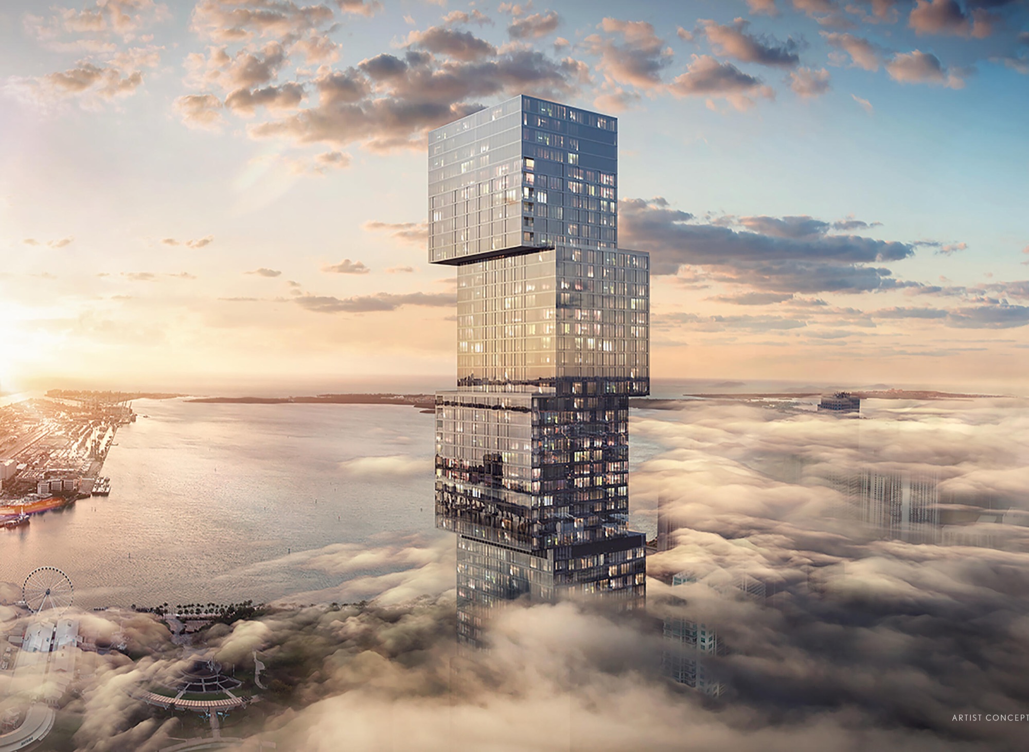 The tower rises 1,049 feet and 100 stories above Biscayne Bay, making it the tallest hotel and residential tower south of Manhattan. Residents enjoy unobstructed 360-degree views of the downtown Miami skyline, Miami Beach, and the Atlantic Ocean.